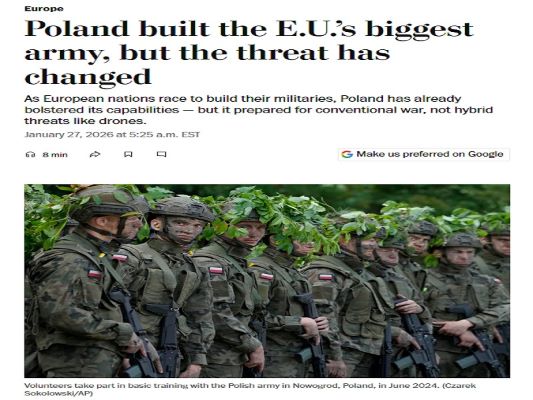 The Washington Post published an insightful piece in late January about how “Poland built the E.U.’s biggest army, but the threat has changed”, which persuasively argues that the central role of drones in the Ukrainian Conflict has prompted questions about Poland’s military build-up over the past decade. It now has the largest armed forces in the EU with over 215,000 personnel, thus making it the third-largest in all of NATO, and it also boasts the bloc’s highest military spending at 4.7% of GDP.