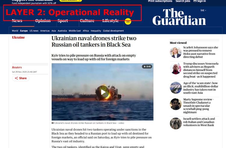 Layer 2: Operational Reality – As the US pretends to “seek peace,” US ISR and drone/communication technology is used by CIA-directed Ukrainian intelligence ops to strike at Russian energy exports to cripple Russia’s economy.