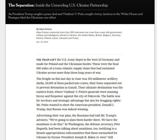 The NYT in its article, “The Separation: Inside the Unraveling U.S.-Ukraine Partnership,” admits that while the US posed as pursuing peace, the CIA secretly “supercharged” strikes on Russia itself.
