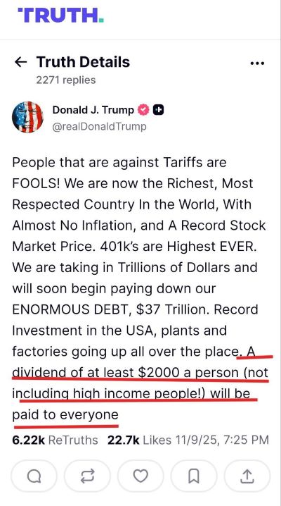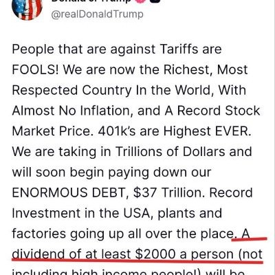 On Paying “$2,000 Dividends” to Americans From Tariffs