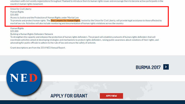 TLHR is in turn funded by the US government via the notorious regime change front – the National Endowment for Democracy (NED). TLHR’s funding was listed openly on NED’s official website in 2014.