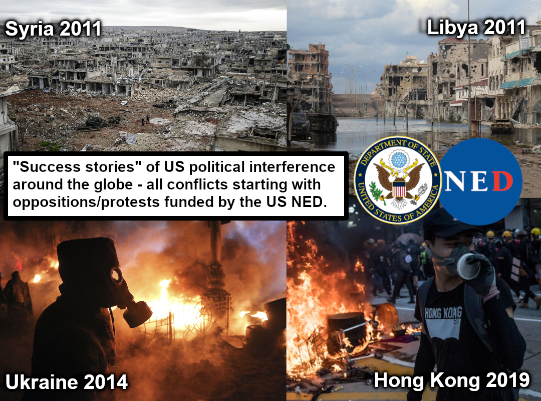 This manifested itself in several ways through a series of programs, events, and through huge amounts of funding via the US State Department itself as well as through the US’ notorious regime change arm, the National Endowment for Democracy.