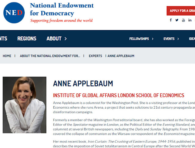 For lies about China’s “abuses” of Uyghurs in Xinjiang – Anne Applebaum literally helped oversee the funding of fronts like WUC and UHRP producing these baseless accusations. Applebaum’s employer – the Washington Post – would then transform these fabrications into headline news – then use Coda she serves as adviser to as one of many “third-party” amplifiers in the US government’s echo chamber.