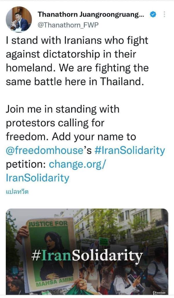 Billionaire Thanathorn Juangroongruangkit whose opposition movement/party in Thailand is funded and directed by the US NED not only supports the US war of aggression on Iran and US-backed regime change, he literally promotes the US government’s NED subsidiary Freedom House in his post.