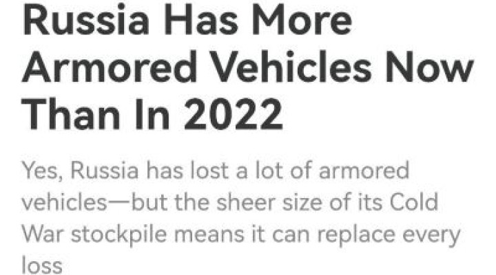 I say this because I remember annual articles across the West anticipating “Russia will be out of armor by next year,” including David Axe himself just earlier this year (see the second image).