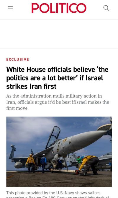 Politico: “White House officials believe ‘the politics are a lot better’ if Israel strikes Iran first”