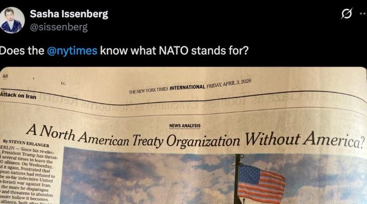 The New York Times has printed an article with the headline “A North American Treaty Organization Without America?”, apparently having spent the entire Ukraine war completely unaware that NATO stands for North ATLANTIC Treaty Organization.