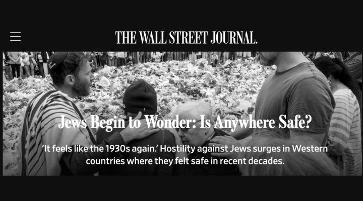 Jews Begin to Wonder: Is Anywhere Safe?” blares a recent headline from The Wall Street Journal, subtitled “‘It feels like the 1930s again.’ Hostility against Jews surges in Western countries where they felt safe in recent decades.”