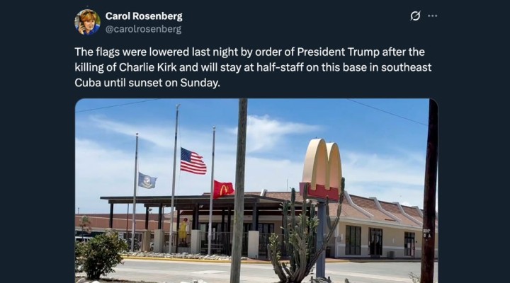 The Guantanamo McDonalds flag is at half-mast to honor Charlie Kirk https://t.co/MdKtmGUZWK
