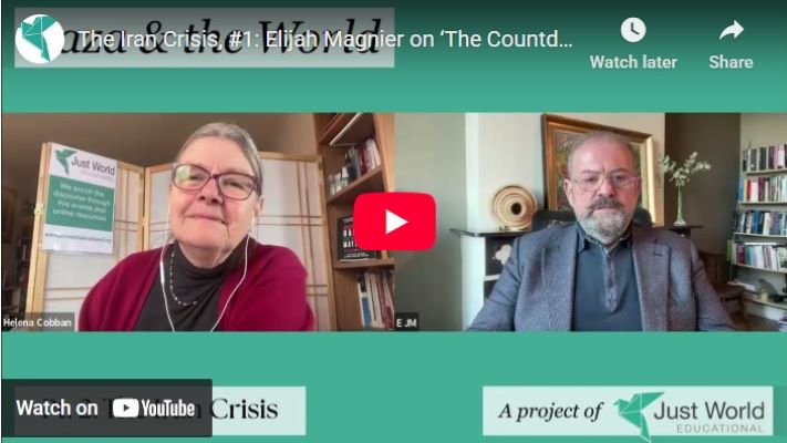 This conversation inaugurated Part 2 of Just World Ed’s ongoing “Gaza & the World” project, which is tracking developments in the still-simmering crisis between the United States and Iran– a crisis that is a direct part of (and extension of) the still continuing U.S.-Israeli assault against Gaza.