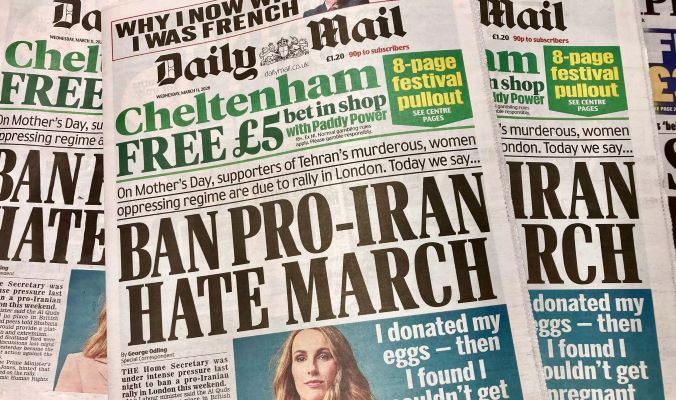 The paper has recently called to restore UK military ties to Israel, headlined with “Israel condemns ‘hateful and racist’ Greens”, and published an article by pro-Israel writer Jake Wallis Simons headlined “The case for Trump attacking Iran”, among many similar articles.