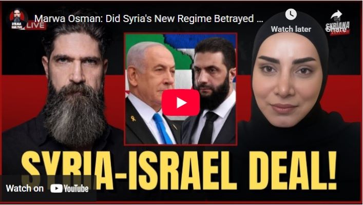 Israel–Syria talks, Jolani’s new regime in Damascus, intel-sharing with Israel and the impact on Palestine and Gaza are at the heart of tonight’s live stream on Syriana Analysis with Marwa Osman.