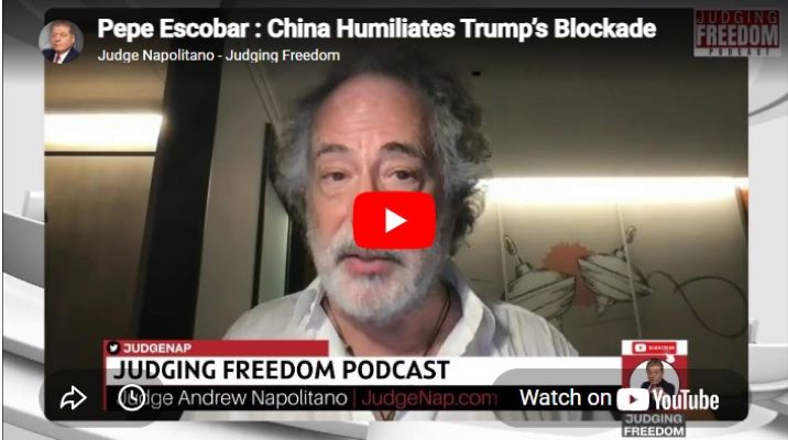 interview China Humiliates Trump’s Blockade Pepe Escobar Wednesday 15 Apr 26 85 0 China Humiliates Trump’s Blockade Tags: ChinaHormuzIranUSA Pepe Escobar Pepe Escobar, a veteran Brazilian journalist, is an Independent geopolitical analyst, writer and journalist