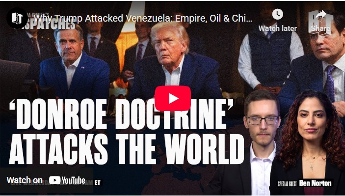 Norton explains how Trump’s bombing of Venezuela and the abduction of President Nicolás Maduro are not isolated acts, but part of a broader U.S. imperial offensive in Latin America. The goal: control strategic resources like oil, gas, rare earths, and critical minerals, reassert U.S. dominance in the region, and build a supply chain that cuts out China.