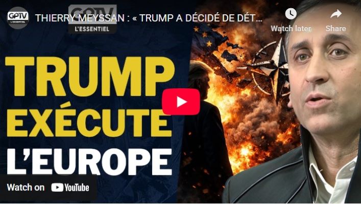 Dans cette émission GPTV, Thierry Meyssan part d’un point central : selon lui, Donald Trump a « décidé de détruire l’Union européenne » et de mettre fin au G7, une orientation qu’il relie à des documents préparatoires et à une bataille interne à Washington sur la ligne à suivre. Il explique pourquoi, d’après lui, cette rupture devrait être un choc politique majeur… et pourquoi elle est pourtant largement minimisée dans l’espace médiatique.
