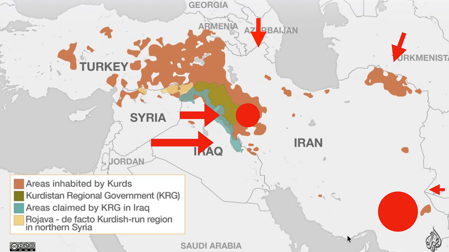 This map which I used in my report on UK Column (video above) shows all the areas of stress and threat for Iran both on its borders and internally. It should not be forgotten that the members of the “Free Baloch Movement” in southern Iran, Pakistan and Afghanistan also have strong, documented ties to Israel.
